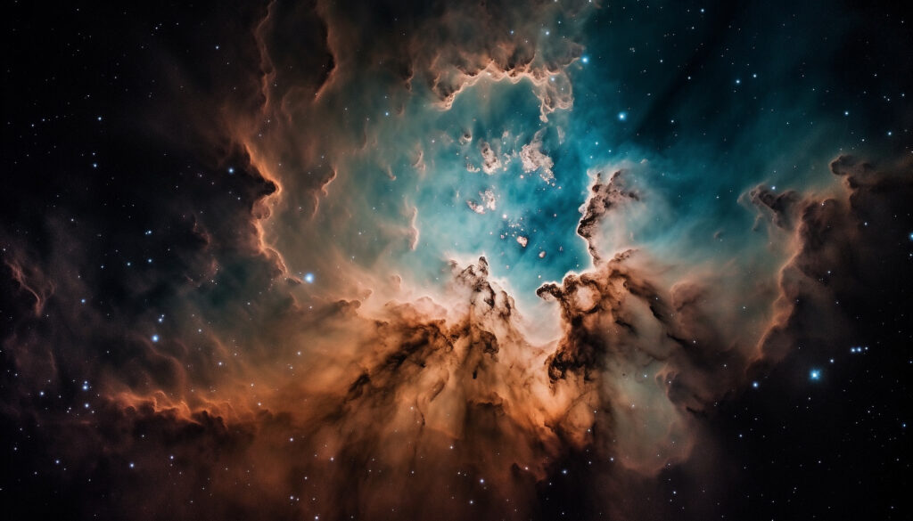 Night sky glows with bright star field and nebula clouds generated by artificial intelligence