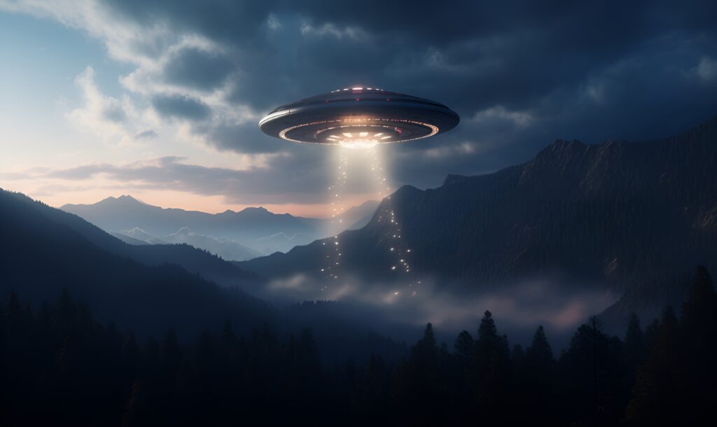 ufo with elevate beam in forest, ai generative design