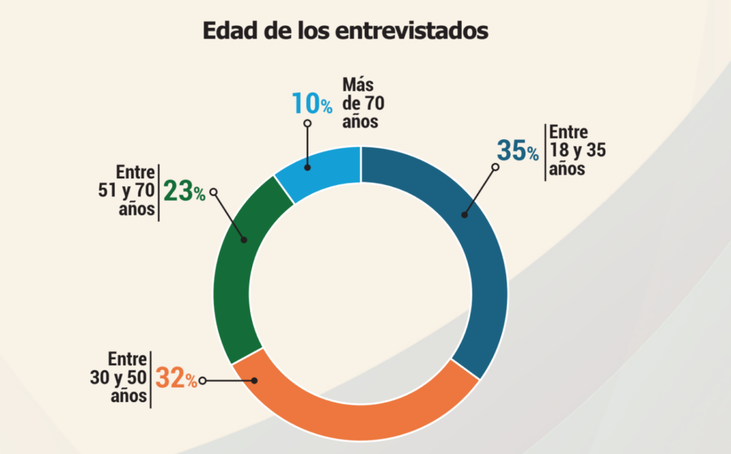 Por rango de edad, el 35 % tiene entre 18 y 35 años, el 32 % entre 36 y 50, el 23 % entre 51 y 70, y el 10 % supera los 70 años.