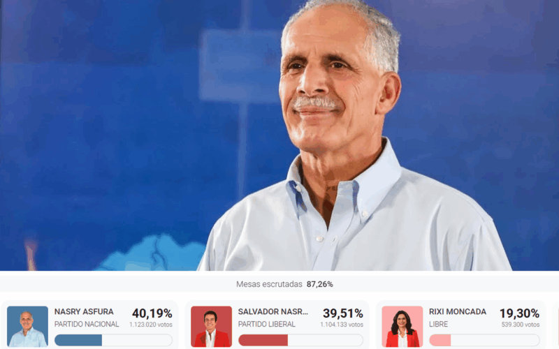 Elecciones presidenciales Honduras 2025: Con el 80% escrutado, Nasralla mantiene ligera ventaja sobre Asfura